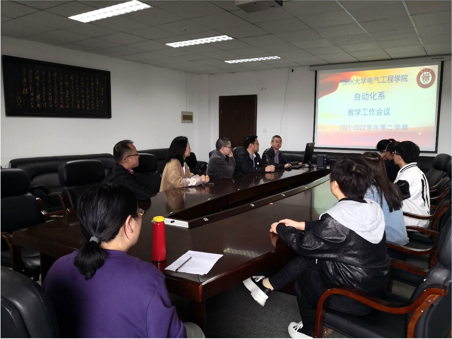 系主任楊靖介紹了 2021-2022第 2學期自動化系在學科建設方面的工作計劃,王霄副主任對自動化系近期教學工作進行了梳理,部 署了自動化系下一步的教學工作,并要求大家一定要要全面貫徹黨的 教育方針,落實立德樹人根本任務,將思政融入我們的課堂教學,為黨 和國家培養德智體美全面發展的社會主義建設者和接班人。會議中還 針對疫情期間學生們的實習實踐環節進行了討論,在保證防疫工作和學生安全的情況下,制定合理的實習實踐方案,以學生為中心,盡量 保證學生們的校外實習順利開展。