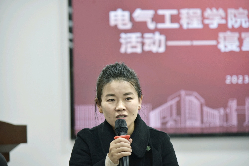 茍敏老師通過自己讀大學時擔任寢室長的經歷,講述了作為寢室長的責任與要求要合理安排寢室事務;要調節寢室內的人際關系;要向寢室同學傳遞學院和班級的信息,確保大家不錯過重要通知。隨即強調寢室長是老師與同學溝通的重要橋梁之一,大家應主動肩負起責任,充當好“潤滑劑”。