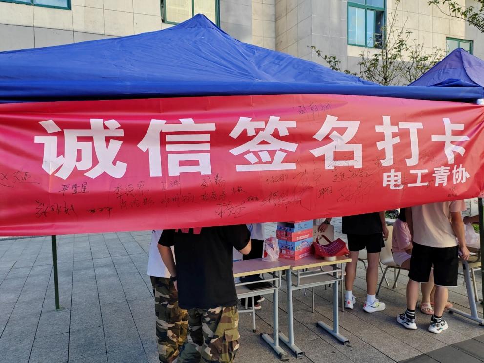 5月26日,誠信簽名活動在貴州大學西校區一食堂門前舉行,同學們紛紛在橫幅上簽下自己的名字,表達對誠信的承諾和支持?,F場還設置了誠信宣傳展板,展示了誠信建設成果和先進典型,吸引同學們駐足觀看。