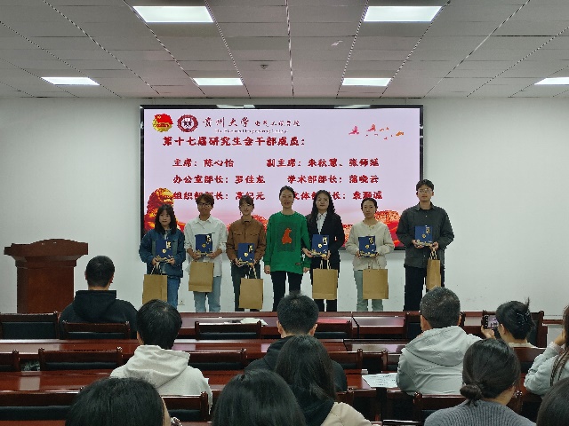 第八屆院團總支書記馮平平同學和第十七屆院研究生會主席陳心怡同學分別匯報了2023-2024學年的工作成果,全面展示學院研究生組織一年來的亮點工作,充分彰顯研究生積極向上的青春風貌。王晶晶為上一屆學生干部成員頒發聘書和禮品。