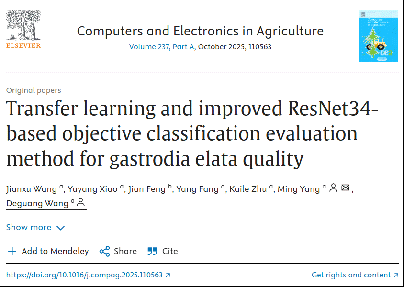 2025年5月22日,貴州大學(xué)3522集團(tuán)新網(wǎng)站楊明團(tuán)隊在農(nóng)業(yè)信息化領(lǐng)域頂級期刊《Computers and Electronics in Agriculture》(SCI一區(qū)Top, IF24 = 7.7)上發(fā)表題為“Transfer learning and improved ResNet34-based objective classification evaluation method for gastrodia elata quality”的研究論文。貴州大學(xué)3522集團(tuán)新網(wǎng)站為該論文第一完成單位,21級自動化專業(yè)本科生王健旭為第一作者,自動化系楊明、王德光為通訊作者。該研究得到了國家自然科學(xué)基金、貴州省教育廳青年科技人才成長項目、國家級大學(xué)生創(chuàng)新創(chuàng)業(yè)等項目計劃的資助。