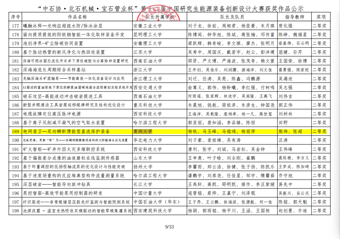 2025年9月19日至21日,在昆明理工大學圓滿結束的中國研究生創新實踐大賽之“中石協·北石機械·寶石管業杯”第十二屆中國研究生能源裝備創新設計大賽中,我院研究生團隊兩項成果獲得國賽獎勵: